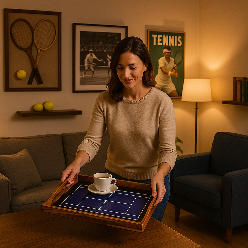 Perfeita para quem ama tênis, nossa bandeja de madeira exclusiva é ideal para servir com estilo, enquanto exibe uma linda representação de uma quadra de tênis. Confeccionada com madeira de alta qualidade, ela combina durabilidade e elegância, tornando-a uma peça única para sua casa ou sala de estar. O design inspirado no esporte traz um toque de sofisticação e paixão pelo tênis, sendo a escolha perfeita para os entusiastas do esporte. Seja para um café da manhã ou um momento de descontração, essa bandeja não é apenas funcional, mas também um item decorativo que expressa seu amor pelo tênis.