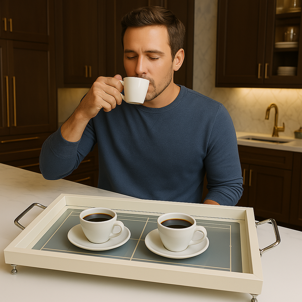 Transforme a decoração da sua casa com nossa elegante Bandeja em Madeira. Com um design único, ela conta com uma impressionante impressão UV das linhas de uma quadra de tênis no espelho da bandeja, trazendo um toque moderno e esportivo para o ambiente.